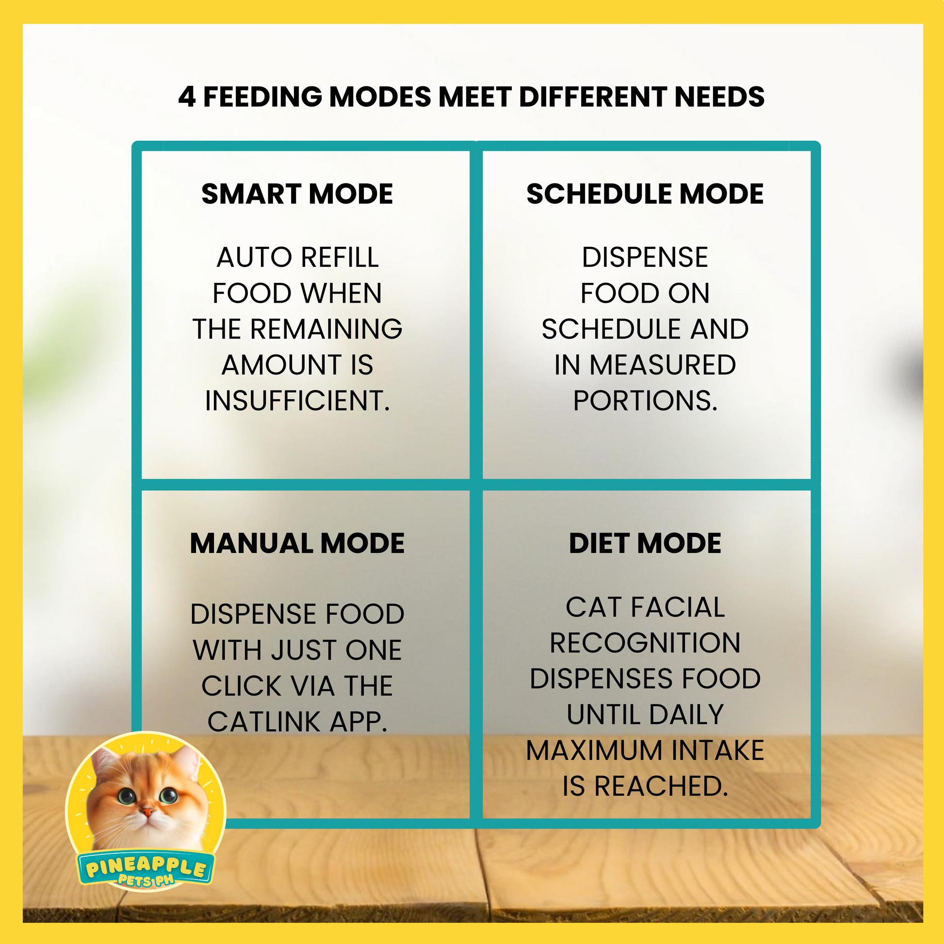 - Four Feeding Modes: Manual, Timer, Smart, and Diet modes for all feeding needs.