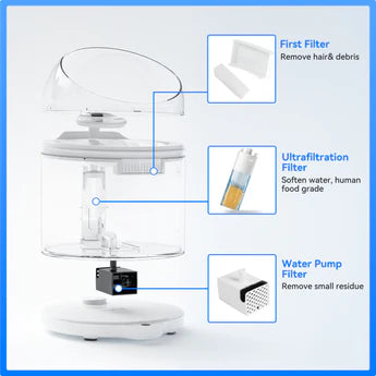 The sealed filter element is insect-proof. With a filtration accuracy of 0.01 microns, it filters out suspended solids and odors in the water, softening water quality. The ion exchange resin reduces the risk of pet urinary calculi. The 91.71oz capacity provides up to 2 weeks of fresh water for a cat.