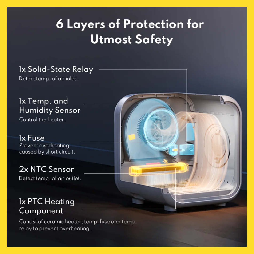 - Comprehensive Airflow: Bottom-up airflow reaches all areas, with adjustable temperature, speed, and drying time.
