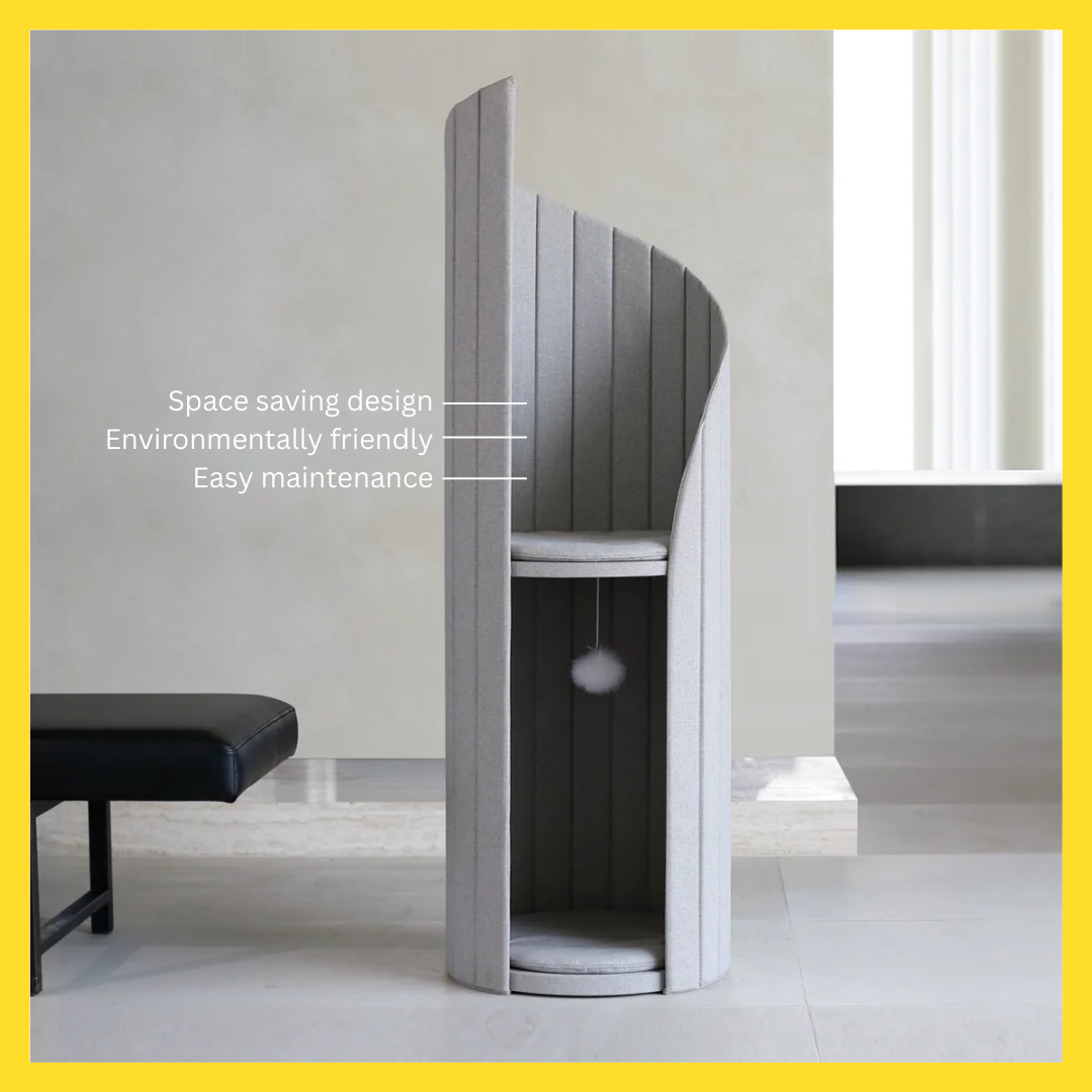 A versatile, stylish, and cozy spot for your cats—designed to blend seamlessly into your modern home. The meoof minimalist cat tower features a semi-enclosed design and a vertical structure, providing multiple levels for climbing and comfort while taking up less room in your home.
