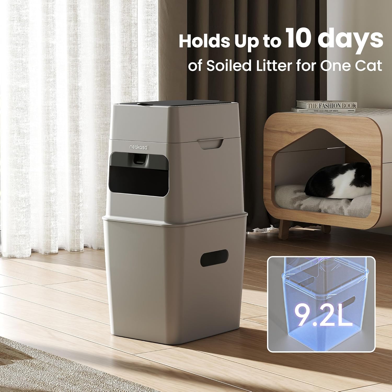 Stores up-to 10 Days of Cat Waste for 1 cat. Includes 1 roll with 16 pcs of high quality bags that seals odors and durable enough to handle heavy weights without tearing. Neakasa Pooguard is the perfect partner beside your litterbox to make clean up easier and odor-free.