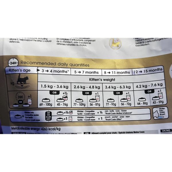 Growth for the Maine Coon kitten is exceptionally long, laying down the framework for the breed’s unique large stature. With adapted energy and protein content, and precisely balanced vitamins (including vitamin D) and minerals (including calcium and phosphorus) to help support healthy bone and joint development for balanced growth.