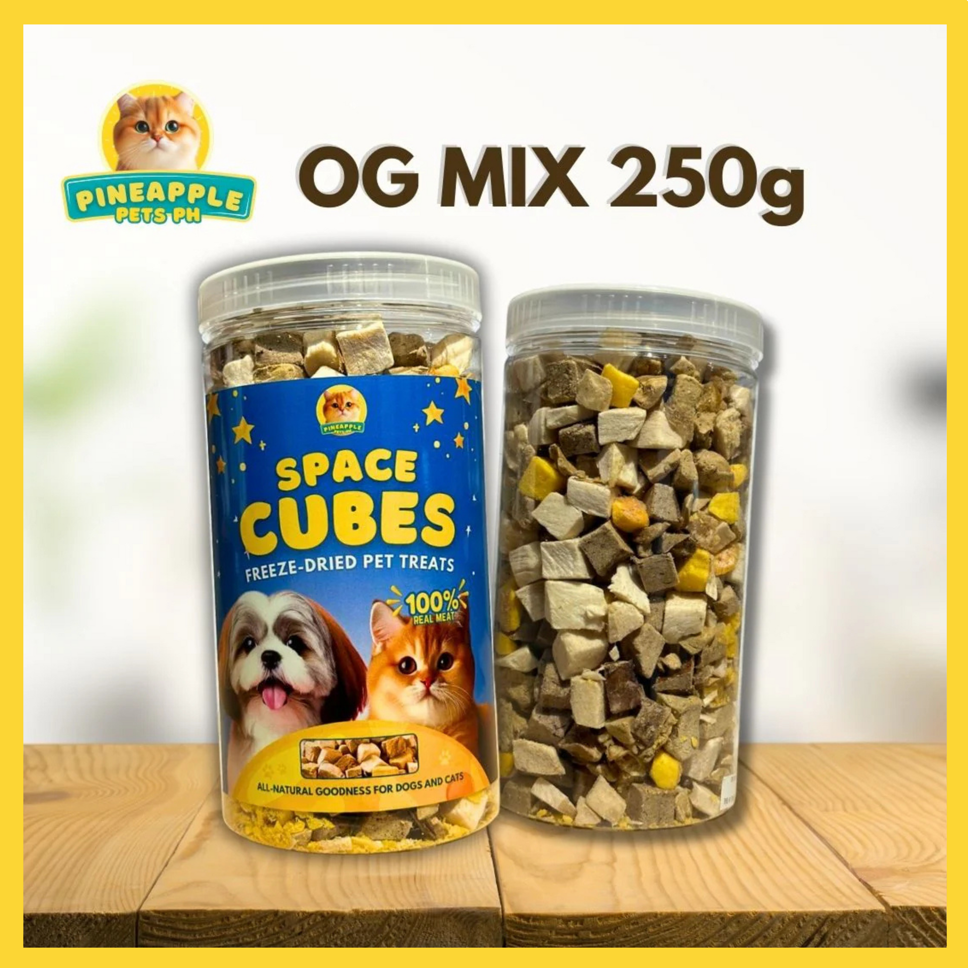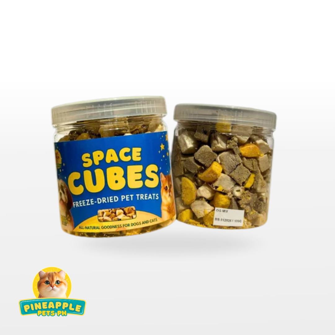 Space Cubes Freeze Dried Pet Treats are made from 100% Real Meat. All-natural goodness made for dogs and cats. It contains a mix of Chicken, Duck, Beef and Egg yolk to cater to dogs and cats taste. It is also a perfect addition to your pet's dry food as a food topper.