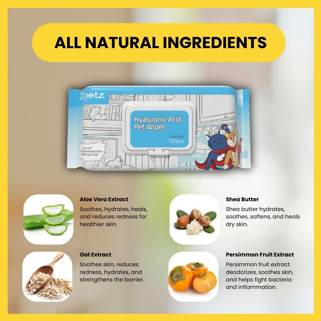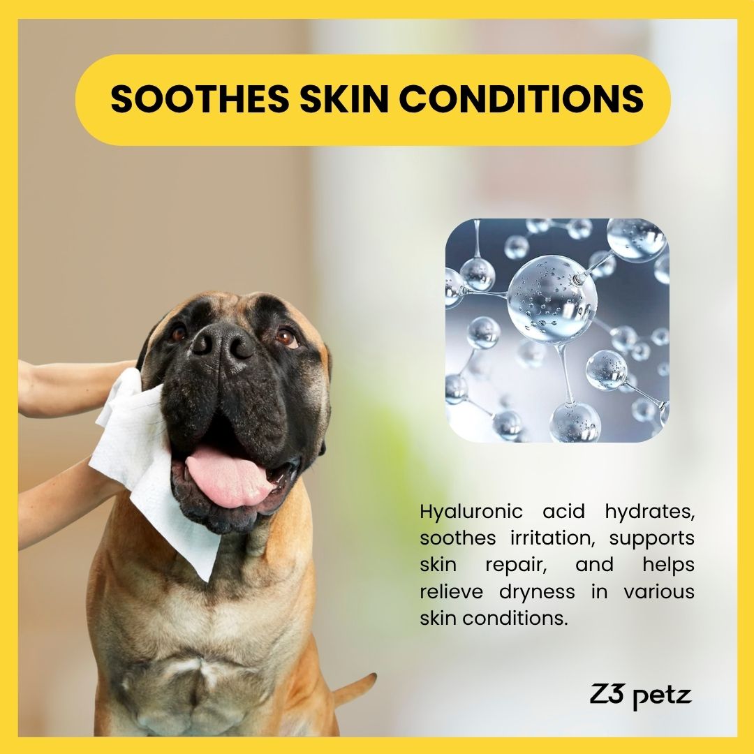Multi-purpose wipes that hydrate, soothe, and clean your pet’s skin with hyaluronic acid.